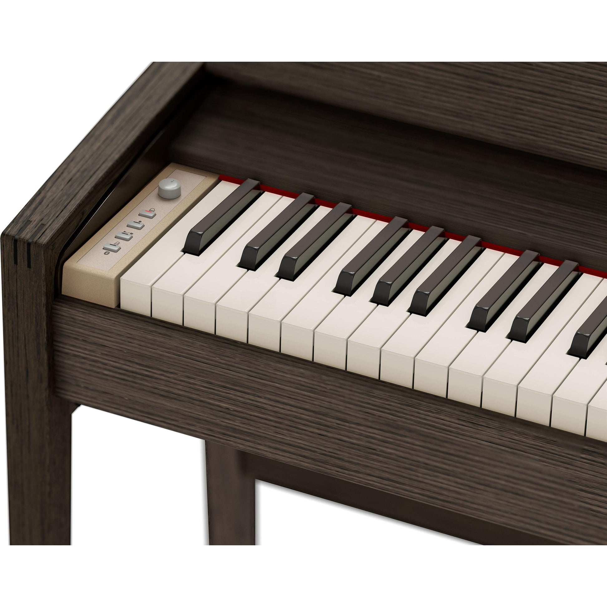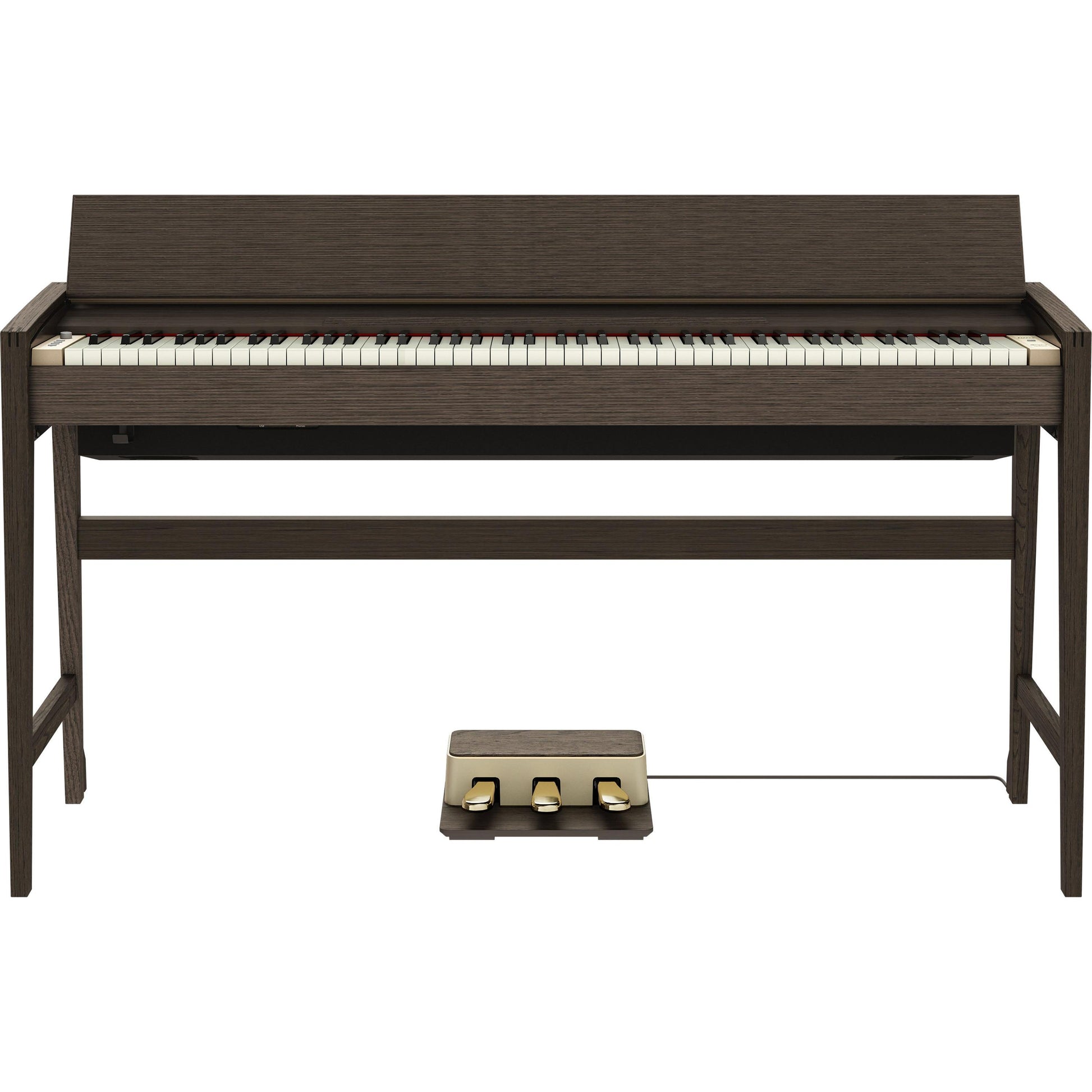KIYOLA er resultatet af et mangeårigt samarbejde mellem Roland og de anerkendte håndværkere hos Karimoku, japanske specialister i træmøbler siden 1940. KIYOLA KF-25’s rene profil og unikke samlinger skaber et klaver, der er mere end et musikinstrument – det er et kunstværk. Den dybe finish i røget eg fremhæver træets naturlige åretegning og er nøje udvalgt til at understøtte klaverets stringente, lineære design. KF-25 forener det klassiske og det moderne i et udtryk, der matcher en raffineret smag.