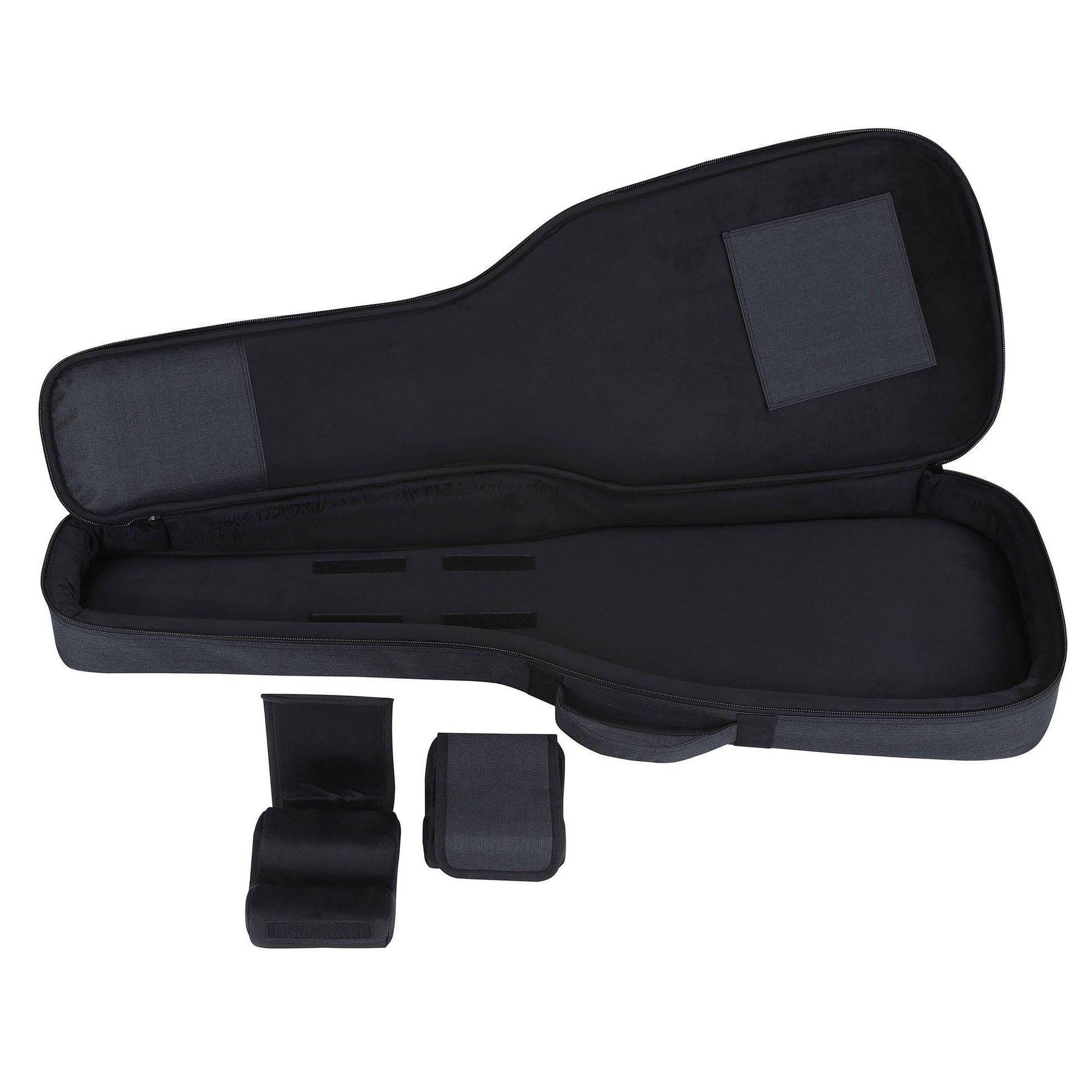 CB-EG10'erens polstrede bløde fløjlinteriør og dobbelt polstret nakkestøtte giver et sikkert og stabilt miljø for din guitar. Støtterne hæver hovedstammen for at beskytte den, og de kan løsnes og placeres om nødvendigt. Og med de integrerede stropper holdes guitaren sikkert på plads under transport.
