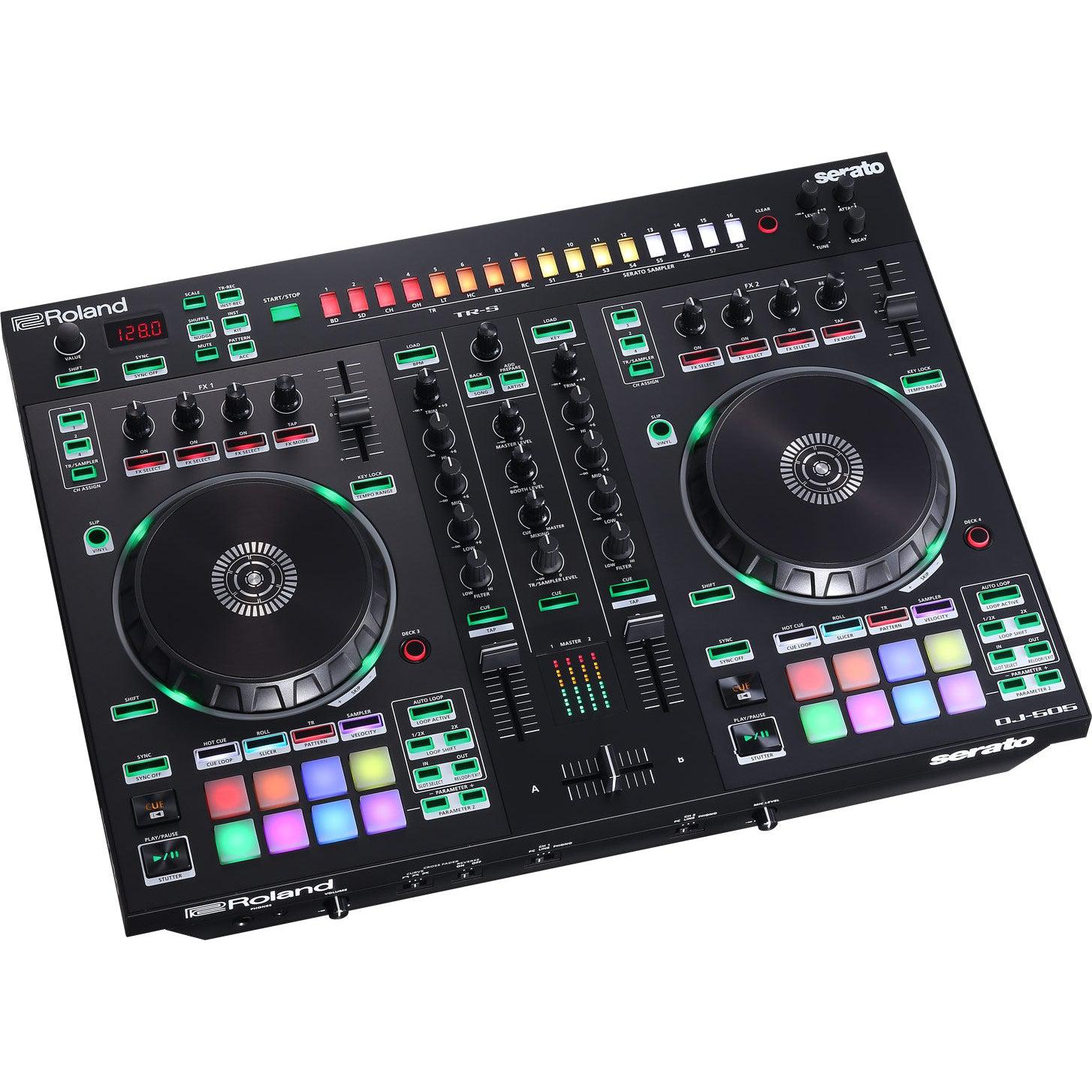 DJ-505 er en 2-kanals, 4-decks Serato DJ-controller, fyldt med funktioner, og et komplet Serato Tool Kit er også inkluderet. Dens mobilitet kombineret med et prof bygget og avanceret sæt features gør DJ-505 ideel til mobile set ups, club DJing og liveoptræden såvel som musikproduktion. Den indbyggede 24-bit/48 kHz audio interface med Rolands high end audio konvertering til Master og Booth-udgange sikrer troværdig gengivelse af lydkilderne og klar, powerfuld lyd.